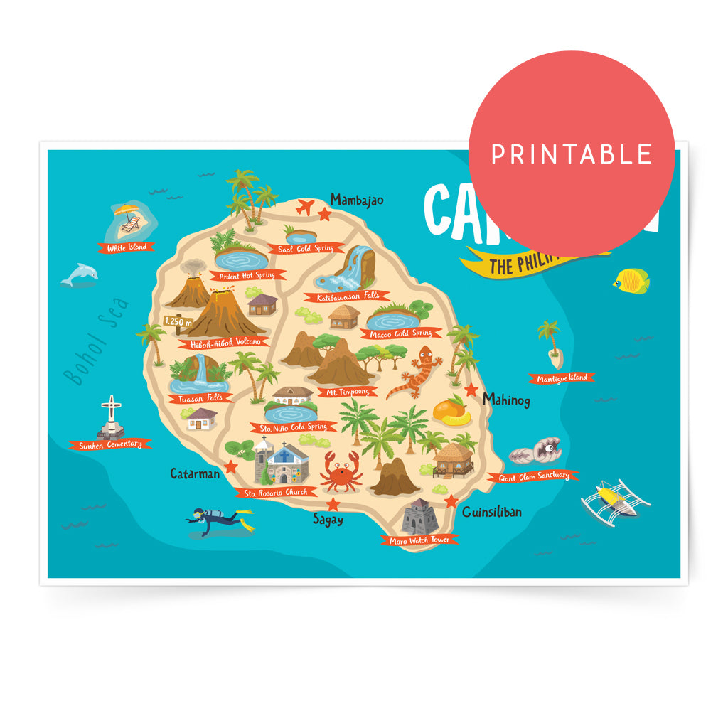 Camiguin Illustrated Map Printable Wall Art Poster โ Pinspired Art