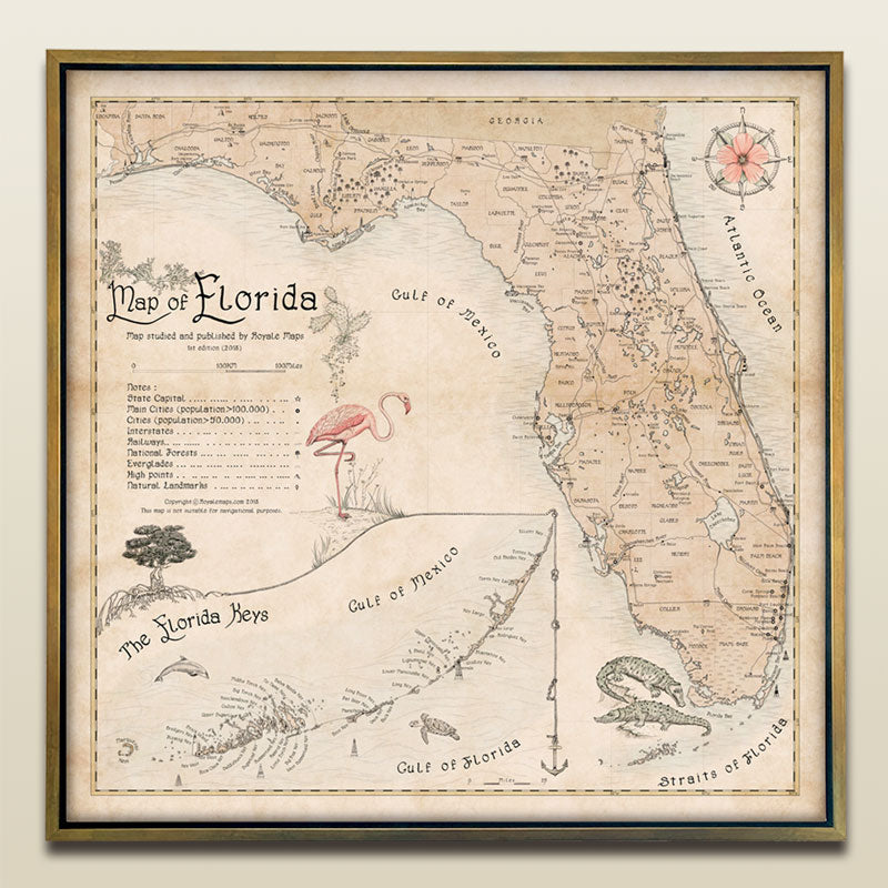 Framed Map Of Florida FRAMED MAP OF FLORIDA – Royale Maps Cartography: Framed Gallery in the Waterloo Arts District specializes in work by African-American artists from across the country and even some Black international artists. One of those artists is Florida-based . Florida is one of the most expensive states in the U.S. for homeowners insurance, largely due to the heightened risk of hurricanes, floods and other severe weather. Annual premiums in the Sunshine .